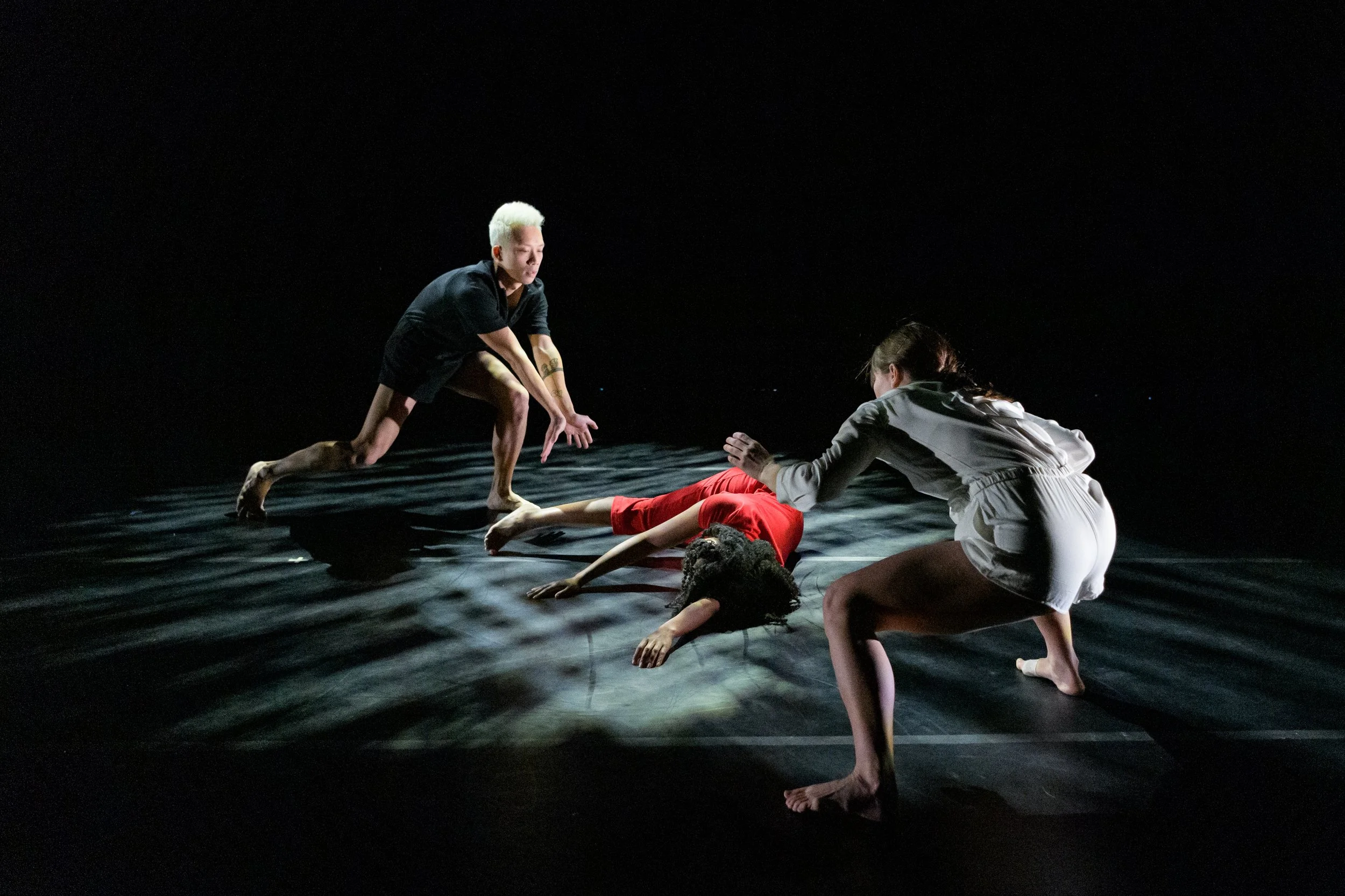 Guest choreographer, and former Company dancer, jo Blake premiered a new piece on the Company inspired by the concepts of sensory stimulation and how this can benefit inter-/intrapersonal relationships. This reflective trio focuses on the personal connection of radical self-love and clarity of voice discovered by experiencing trauma. Plunging, swirling, and diving amongst the complications of today’s social issues, this dance invites the ever-changing, coordinated, and repeated murmurs of individual growth and change.